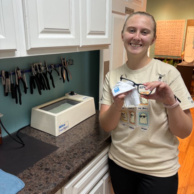 Our optician, Cami, deals with everything pertaining to glasses. She is very knowledgable about the different lens options available and can advise patients about the best lenses for their particular needs. She also assists in frame selection, orders glasses, helps patients understand their insurance coverage, and files insurance claims for glasses. She repairs and adjusts glasses, manages eyewear inventory, and maintains the frame boards. Cami enjoys playing pickleball and lives with her husband Travis and thier dog Maverick.